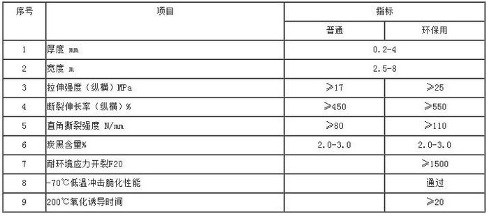 HDPE土工膜技術指標